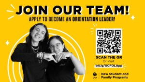 Orientation Leaders (OLs) serve as peer educators, peer advisors, group facilitators, resource and referral agents, and role models to new students and their supporters at UCF! This is a demanding role, but when done well we believe it is equally, if not more, rewarding. Orientation Leaders get to shape the experiences and journey of thousands of new students and their families, guests, and supporters during their first moments on campus. You become a first friend, a mentor, a resource, and a source of knowledge and inspiration to new Knights!